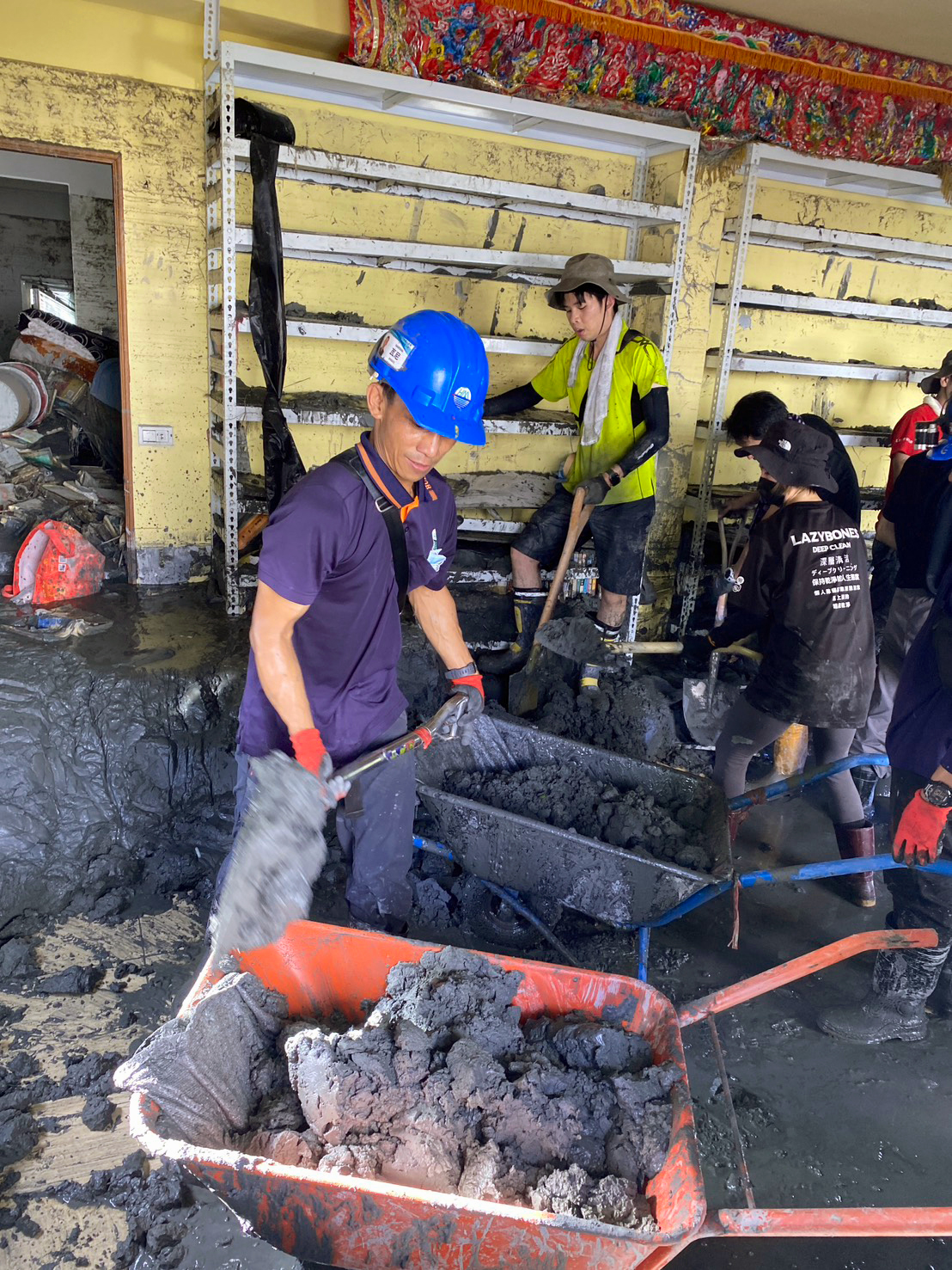 惠民實業股份有限公司 光復救災關懷團 News 2025-10-02 2025年9月花蓮縣馬太鞍堰塞湖溢流釀災,道路及住宅內皆是大量淤泥,惠民實業與自來水公司組成光復救災關懷團,協助清淤及修復自來水管線。